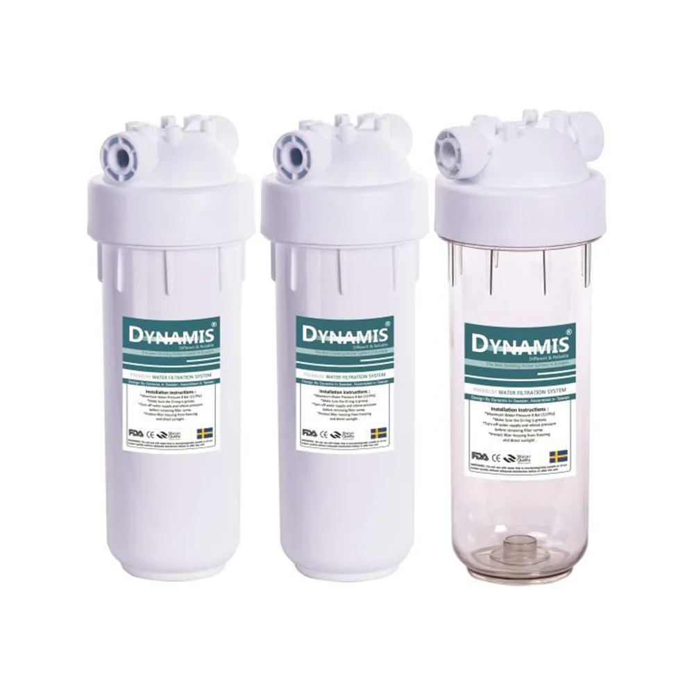ست هوزینگ تصفیه آب داینامیس مدل pro، از جنس پلاستیک تقویت شده می باشد. تعداد فیلتر استفاده شده در این ست هوزینگ تصفیه آب 3 عدد است. این فیلترها شامل فیلتر الیافی پلی پروپیلن، فیلتر کربن گرانول و فیلتر کربن فعال می باشد. فیلتر الیافی برای حذف ذرات معلق در آب استفاده می شود. فیلتر کربن گرانول برای حذف بو و طعم ناططبوع از آب به کار می رود. فیلتر کربن بلاک نیز تکمیل کننده کار فیلتر کربن گرانول می باشد و وظیفه اش حذف ذراتی است که در مرحله قبل فیلتراسیون توانسته اند از فیلتر کربن گرانول عبور کنند. این محصول از بهترین مواد اولیه دارای گرید خوراکی تهیه شده است و تحمل فشار تا 20 بار را دارد.