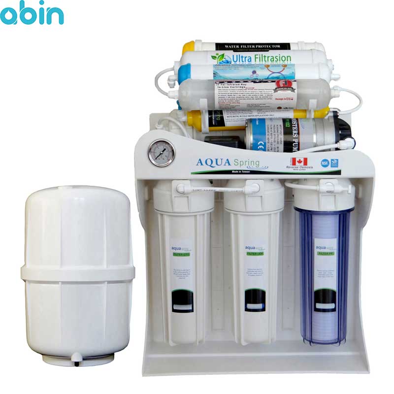 دستگاه تصفیه آب آکوآ اسپرینگ دارای فیلتر محافظ ممبران برای محافظت از فیلتر ممبران می باشد. فیلترهای قلیایی، اکسیژن ساز و مینرال این دستگاه جهت افزایش خواص آب بر روی دستگاه نصب شده اند. دستگاه آکوآ اسپرینگ محصول با کیفیت کشور تایوان می باشد و دارای استانداردهای بین المللی NSF ،ISO ،FDA ،WATER QUALITY و CE است.